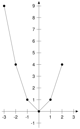 | y=f(x) | 9 | 4 | 1 | 0 | 1 | 4 |