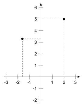 Wir benutzen sogenannte Koordinatensysteme (eine Erfindung von René Descartes, einem französischen Philosophen und Mathematiker des 17. Jahrhunderts) um Punkte in einer Ebene eindeutig beschreiben zu können. Dazu verwenden wir zwei Koordinatenachsen (die „x“-Achse und die „y“-Achse). Den Schnittpunkt beider Achsen nennen wir den Nullpunkt (0|0). Damit können wir jeden Punkt der Ebene dadurch beschreiben, dass wir seine x-Koordinate und seine y-Koordinate angeben. Im Bild sehen wir z.B. die Punkte (2|5) und (-1,6|3,3).