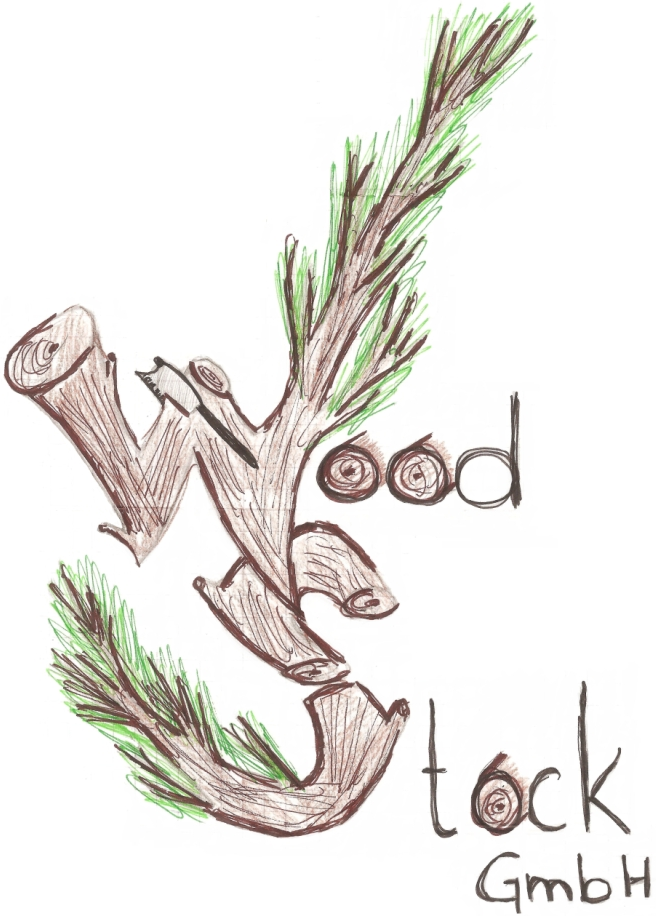 wenn eine Pixelgrafik sehr stark vergrößert werden muss. Angenommen wir wollen das rechtsseitige Firmenlogo der „Woodstock“ GmbH (ein Modellunternehmen, das ich mit Kollegen im Unterricht einsetze) als Plakat auf eine 4 mal 6 Quadratmeter große Leinwand aufbringen. In diesem Fall müsste man das Bild so stark vergrößern, dass die einzelnen Pixel wieder sichtbar werden: