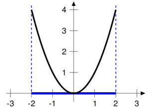 Nun ist nur noch die Frage, von wo bis wo die Funktion gezeichnet werden soll. Auch hier hilft uns die Mathematik durch den sogenannten Definitionsbereich, der meistens mit D abgekürzt wird: Der Definitionsbereich gibt an, welche Zahlen für x eingesetzt werden dürfen. D=[-2; 1] zum Beispiel bedeutet, dass x zwischen -2 und 1 liegen muss. Dadurch werden die Funktionen sozusagen „abgeschnitten“. Für unser „u“ könnten wir den Definitionsbereich D=[-2; 2] wählen und erhielten dieses Ergebnis:
