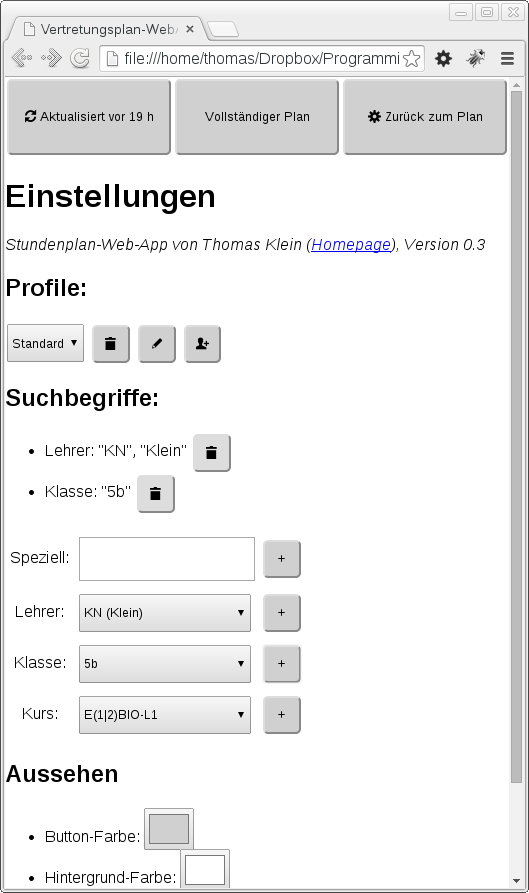 Um die App zu benutzen, muss man nach dem Einrichten nur hin und wieder auf den „Aktualisieren“-Button oben links klicken, damit der aktuelle Plan geladen wird. Die App zeigt an, wieviel Zeit seit dem letzten Laden vergangen ist.